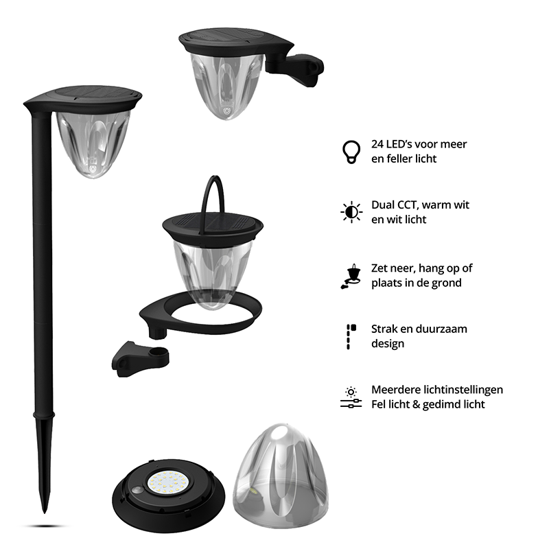 De tuinlampen zijn op verschillende manieren te gebruiken. Je kunt er bijvoorbeeld voor kiezen om de lamp aan de muur of de schutting op te hangen. Heb je meer aan een grondspot langs het tuinpad bijvoorbeeld? Ook daar is de tuinlamp voor geschikt! Omdat de tuinlamp bestaat uit verschillende onderdelen, kun je deze net zo hoog maken als je zelf wilt. De lamp zelf is ontkoppelbaar, en daardoor ook als lantaarn in te zetten.
