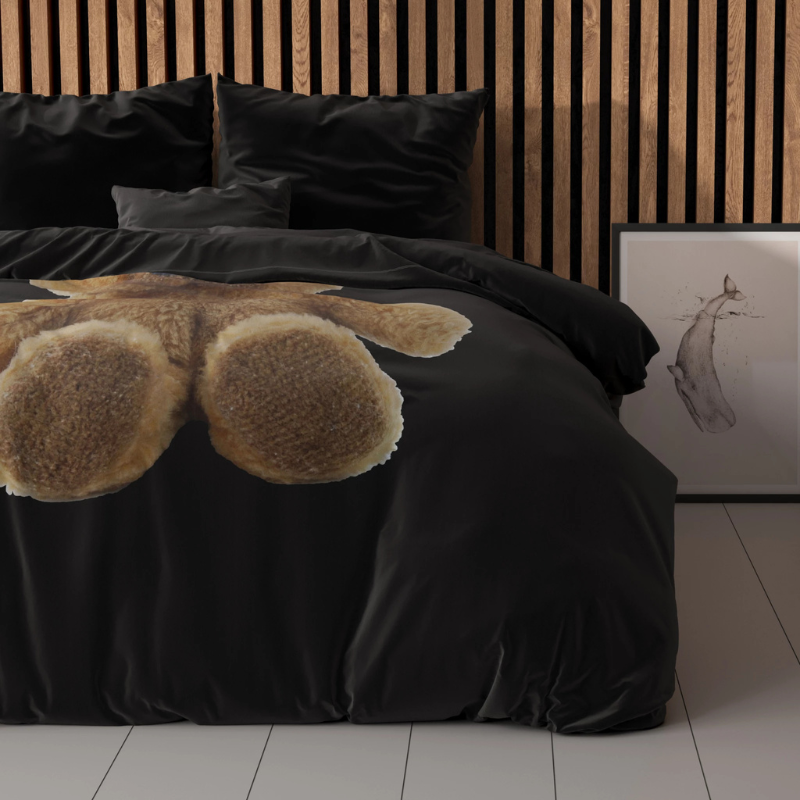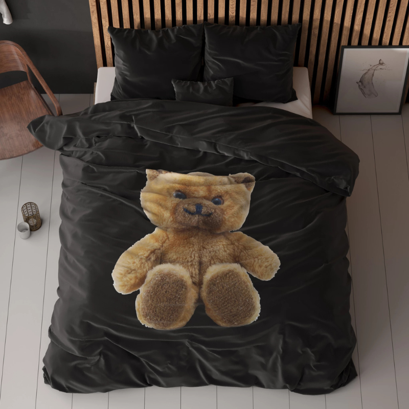 Het Dekbedovertrek Brave Teddy biedt een unieke en gezellige uitstraling met een schattige teddybeer op een diepe zwarte achtergrond. Het ontwerp, in combinatie met de digitale printtechniek, zorgt voor een haarscherpe en levendige uitstraling die zijn charme behoudt, zelfs na meerdere wasbeurten.