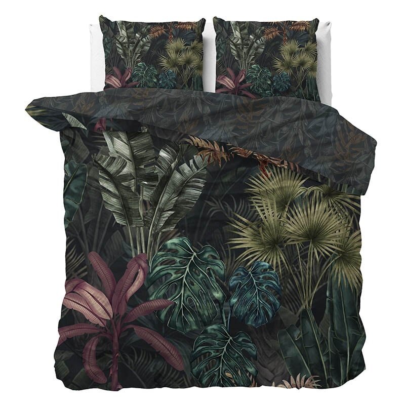 Dit dekbedovertrek brengt een exotische en luxe sfeer in je slaapkamer met zijn levendige ontwerp van tropische bladeren in rijke, diepe kleuren. De gedetailleerde patronen en tinten creëren een dramatische en stijlvolle uitstraling, perfect om je interieur een gevoel van avontuur en verfijning te geven.