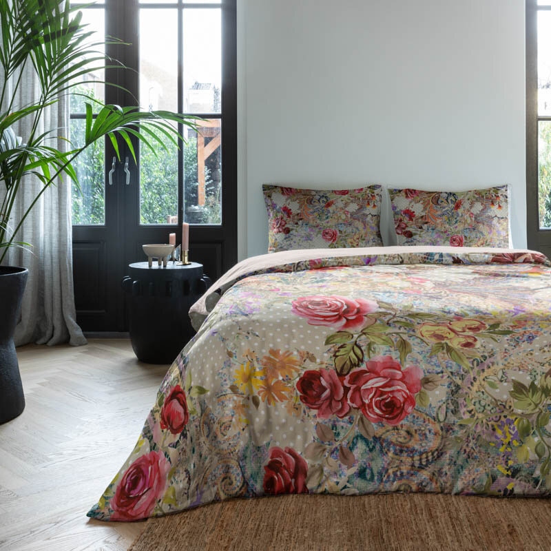 Dit dekbedovertrek met een weelderig en kleurrijk bloemen- en paisleymotief voegt een vleugje romantiek en elegantie toe aan elke slaapkamer. Het rijke ontwerp en de levendige kleuren zorgen voor een uitnodigende en artistieke sfeer, waardoor het een perfecte keuze is voor wie op zoek is naar een combinatie van comfort en een opvallende, stijlvolle esthetiek.