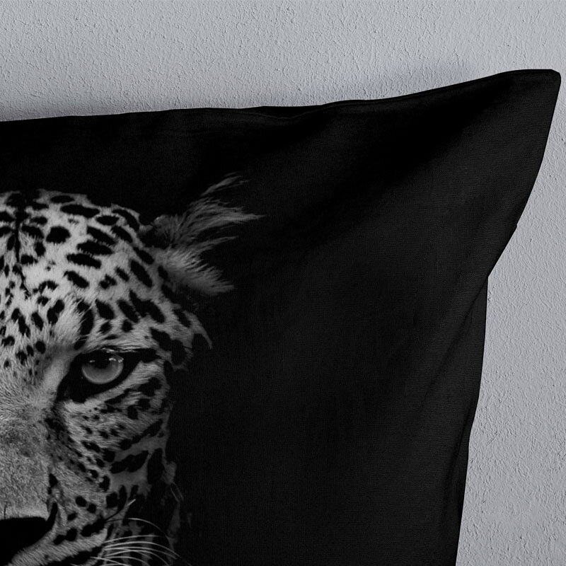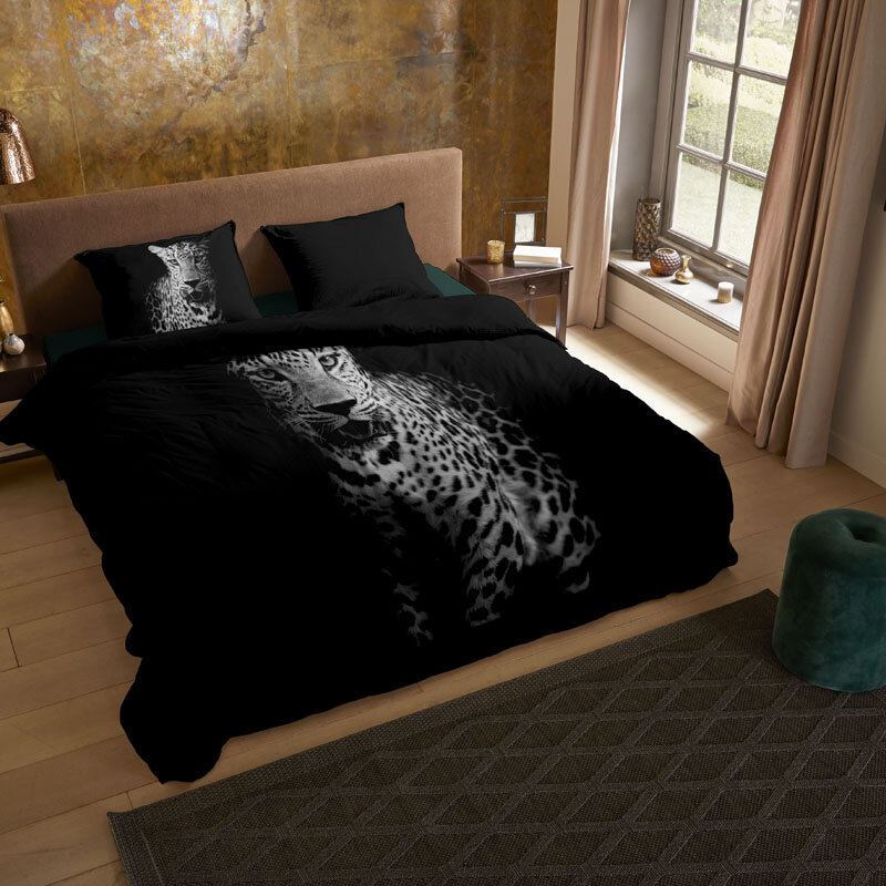 Breng een exotische en mysterieuze sfeer in je slaapkamer met dit indrukwekkende Luipaard dekbedovertrek. De diepe zwarte tinten en het gedetailleerde luipaarddesign stralen pure elegantie uit.