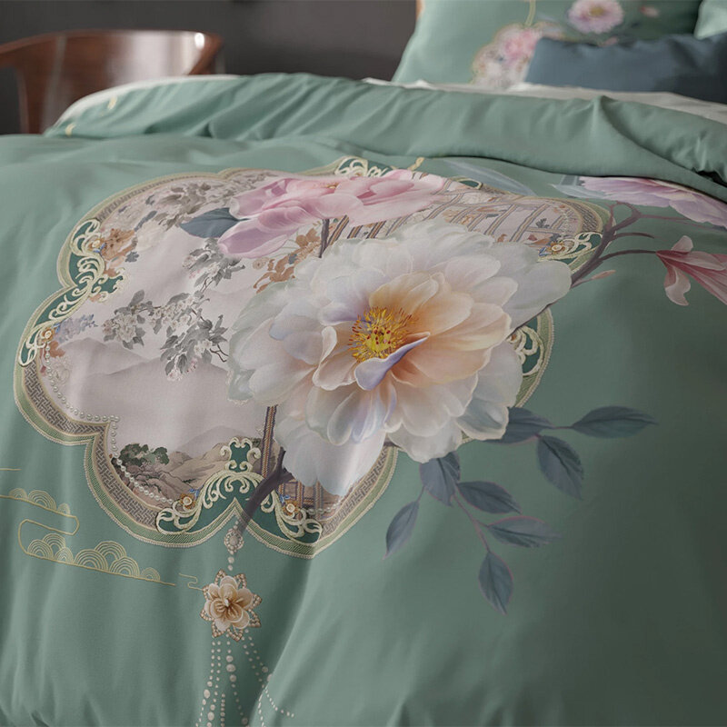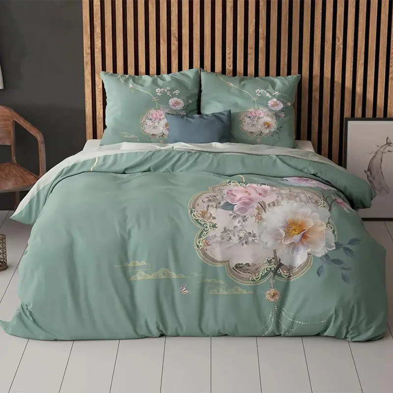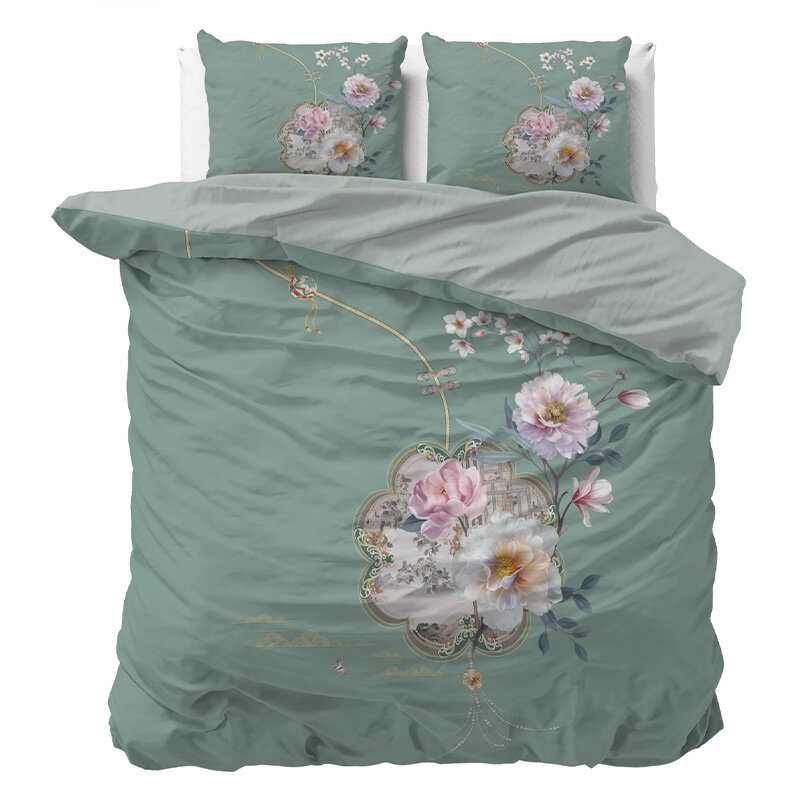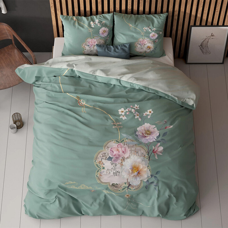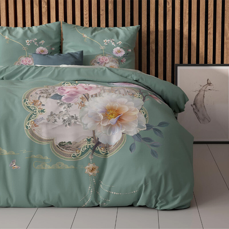 Breng sfeer en verfijning in je slaapkamer met Dekbedovertrek Lyra - Groen. De gedetailleerde bloemenprints en elegante accenten geven een klassieke en stijlvolle uitstraling die rust en warmte uitstraalt.