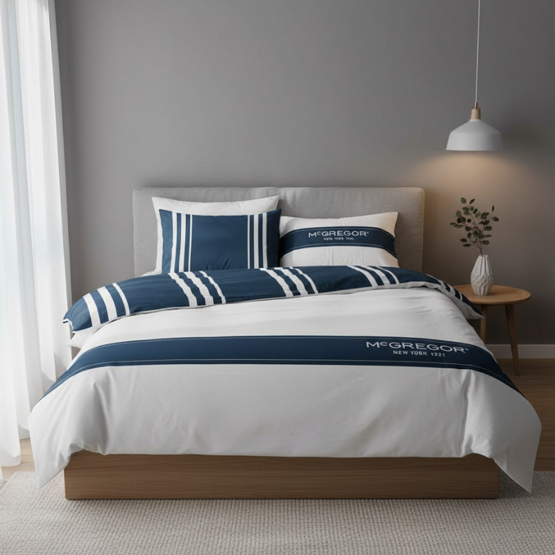 Breng rust en moderniteit in je slaapkamer met het McGregor dekbedovertrek. Het tijdloze ontwerp en de hoogwaardige katoenen stof zorgen voor een stijlvolle uitstraling én optimaal slaapcomfort. Ideaal voor iedereen die houdt van een frisse, verzorgde look in de slaapkamer.