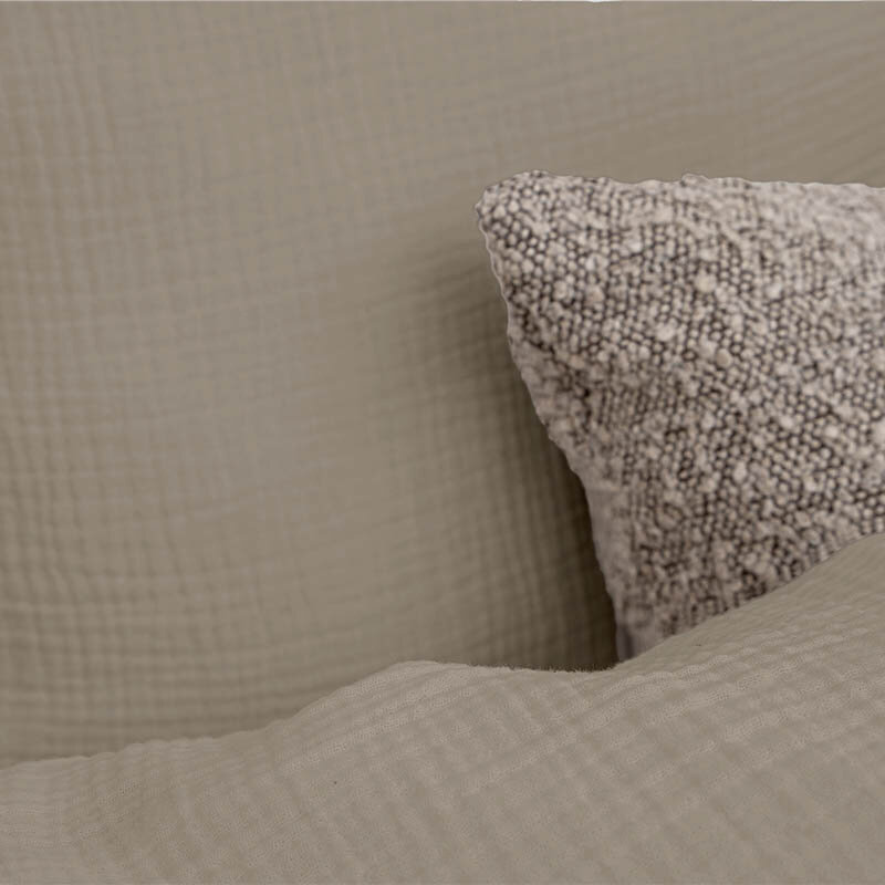 Het Mousseline Katoen Taupe dekbedovertrek biedt ultiem slaapcomfort dankzij de hoogwaardige 100% mousseline katoen. Deze stof staat bekend om zijn luchtige en ultrazachte eigenschappen. De natuurlijke kreukstructuur geeft het een speelse, nonchalante uitstraling en zorgt ervoor dat strijken overbodig is.