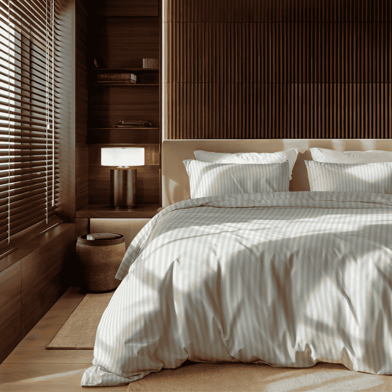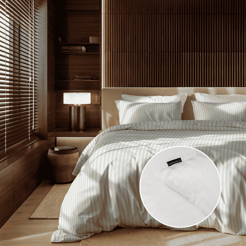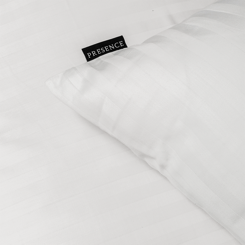 De klassieke witte kleur in combinatie met het subtiele satijnstreep-patroon geeft je bed een verfijnde, hotelwaardige uitstraling. Dit tijdloze design past perfect in elk interieur en creëert een serene en rustgevende sfeer in de slaapkamer.
