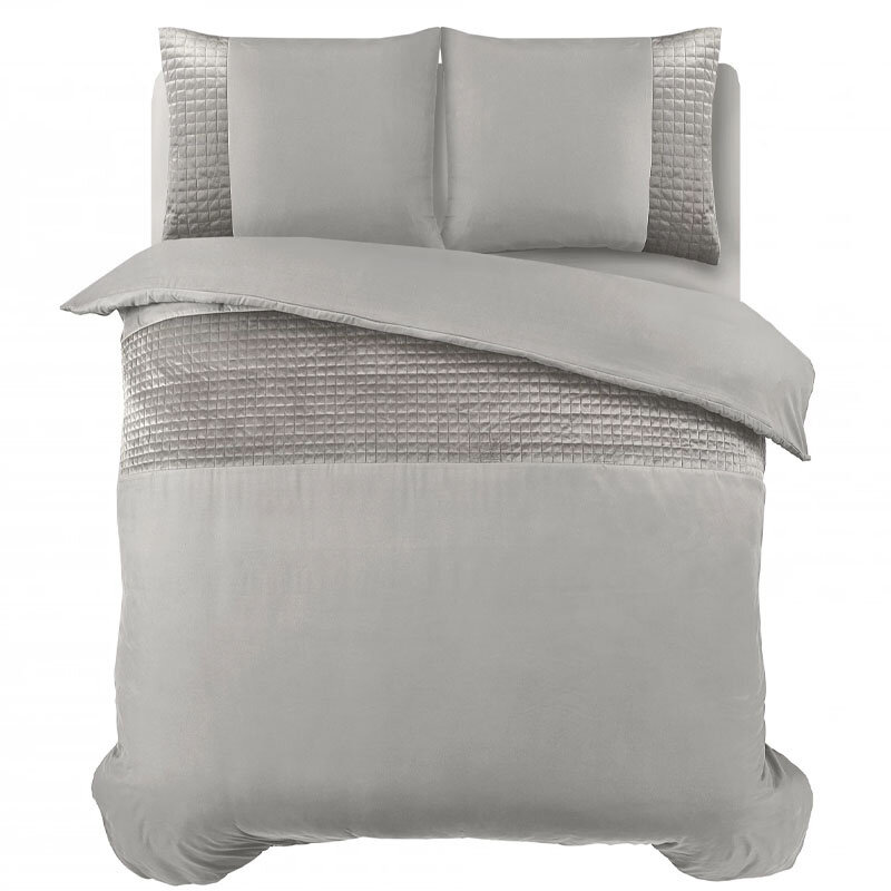 Dekbedovertrek Velvet Band - Zand/Grijs