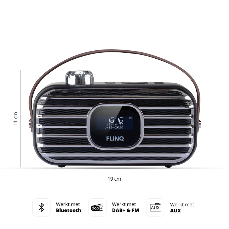 De Retro DAB+ Radio van FlinQ bevat een ingebouwde, digitale alarmklok met de benodigde sleep- en snoozefuncties. Zorg dat je lekker wakker wordt met je favoriete nummer! Ervaar de digitale radio met 80 vooringestelde stations; 40 FM stations en 40 DAB stations! Daarnaast heeft de Retro DAB+ Radio van FlinQ een 57mm Neodymium Speaker is een unieke kwaliteit speaker en zorgt voor het ruisvrije geluid dat de DAB+ digitale radio biedt! Wat wil je nog meer!?