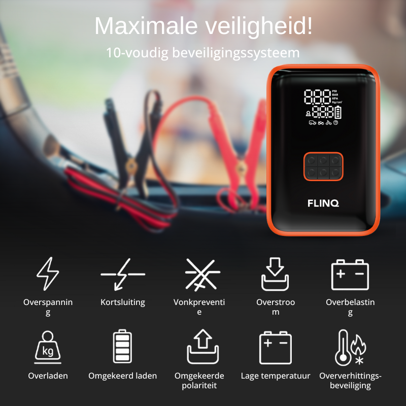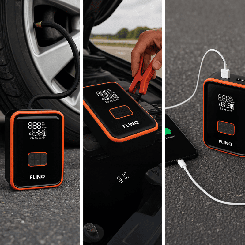 Je kiest voor maximale zekerheid onderweg in één compact apparaat. Met starthulp, luchtcompressor, powerbank en zaklamp bespaar je tijd, ben je zelfstandiger en rijd je veiliger dankzij de juiste bandenspanning.