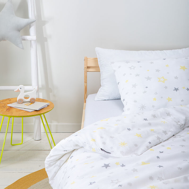 Fleur de slaapkamer van jouw kind op met dit lieve dekbedovertrek vol sterren. Zo droomt je kind elke avond over de mooiste avondturen.