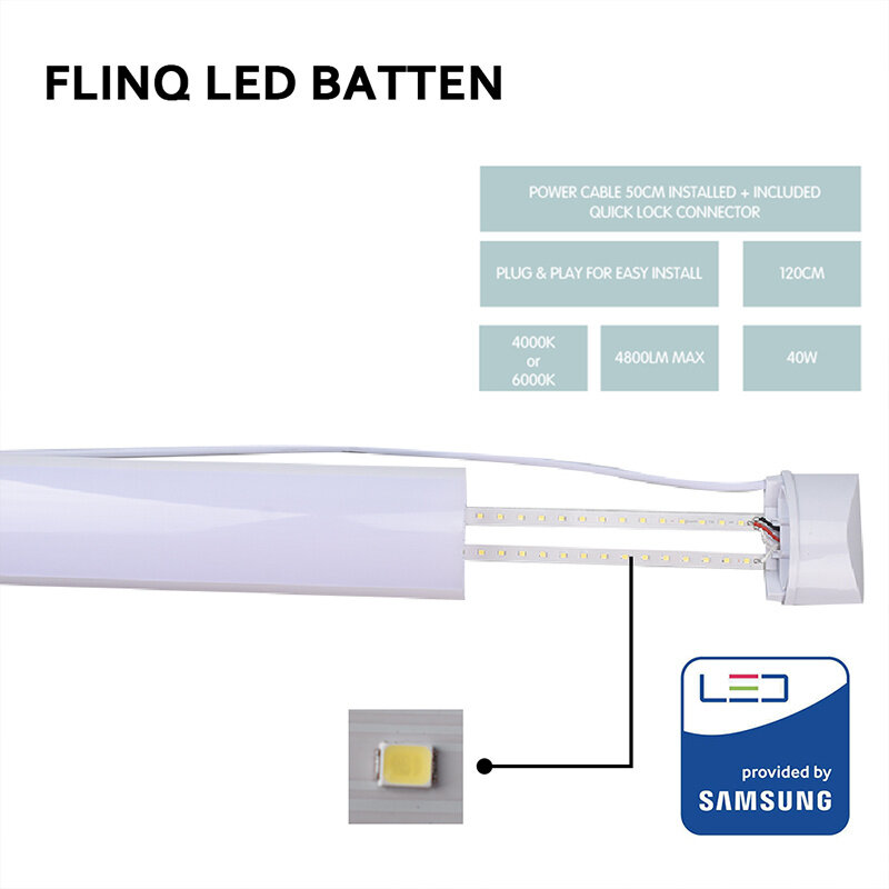 Deze zuinige Led-Batten worden geleverd Met een plug & play montageklemmen voor muren en wanden en een GRATIS quick-lockconnector. Je kunt de Led-Batten overal waar je maar wilt ophangen.
