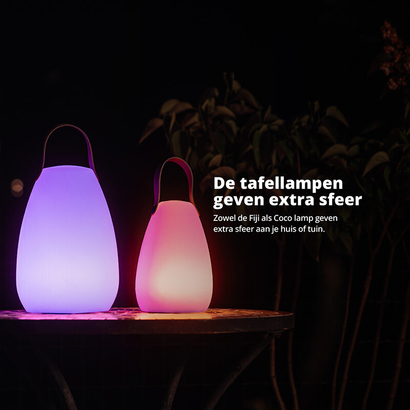 Creëer moeiteloos de juiste sfeer met warm wit licht voor een rustige ambiance of kies uit de RGB-kleuren voor een levendige setting. Of het nu gaat om een intiem diner, een zomerse avond buiten of een feestje, de Fiji past zich aan jouw moment aan.