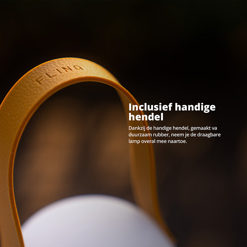 De FlinQ Fiji combineert een strak, modern ontwerp met praktisch gebruiksgemak. Dankzij het compacte formaat en lichte gewicht neem je de lamp eenvoudig mee naar de eettafel, het balkon of het terras. De lederlook draagriem geeft de lamp een luxe uitstraling én maakt verplaatsen extra makkelijk.