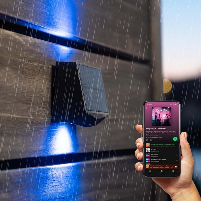 Verbind de lampen met Spotify en laat de kleuren veranderen op het ritme van de muziek. Een feestje in de tuin wordt nog gezelliger met de Orion!