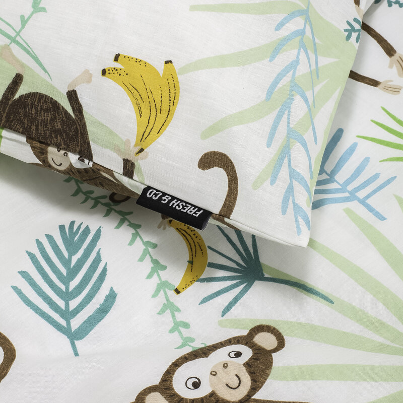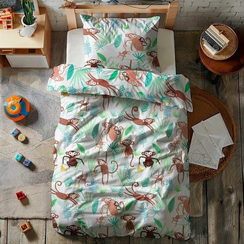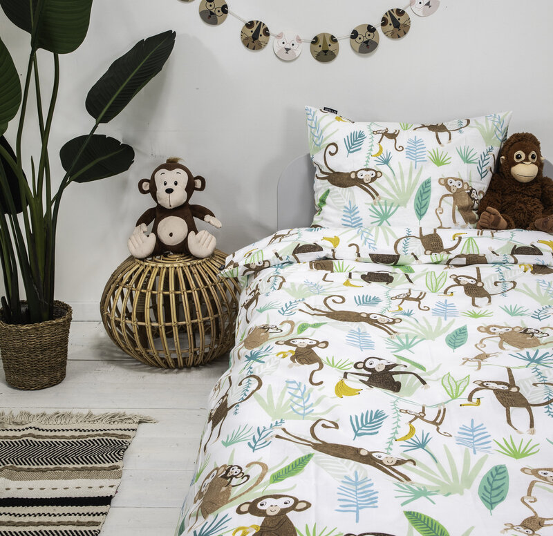 Ga jij geen enkel avontuur uit de weg? Dit leuke dekbedovertrek heeft een print van aapjes. Hoeveel apen kun jij tellen?