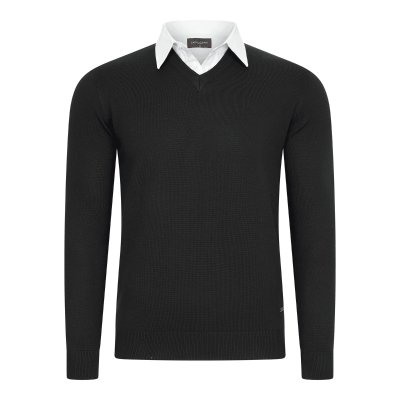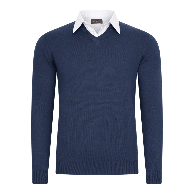 - V-hals trui met geïntegreerde overhemdkraag.