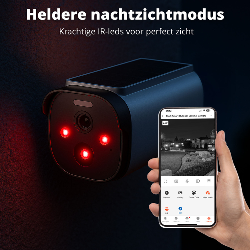 Met deze camera kies je voor zekerheid, gebruiksgemak en innovatie. Je hebt altijd live zicht, ontvangt direct meldingen en slaat beelden veilig op, volledig te bedienen via de gratis FlinQ App.