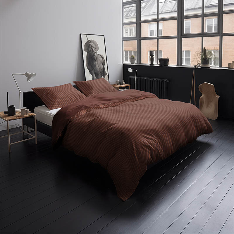 Het ontwerp van Terracotta Stripe kenmerkt zich door een stijlvol gestreept patroon in diepe terracottatinten. Deze warme kleuren brengen een rustgevende sfeer in je slaapkamer en passen perfect bij zowel moderne als klassieke interieurs.