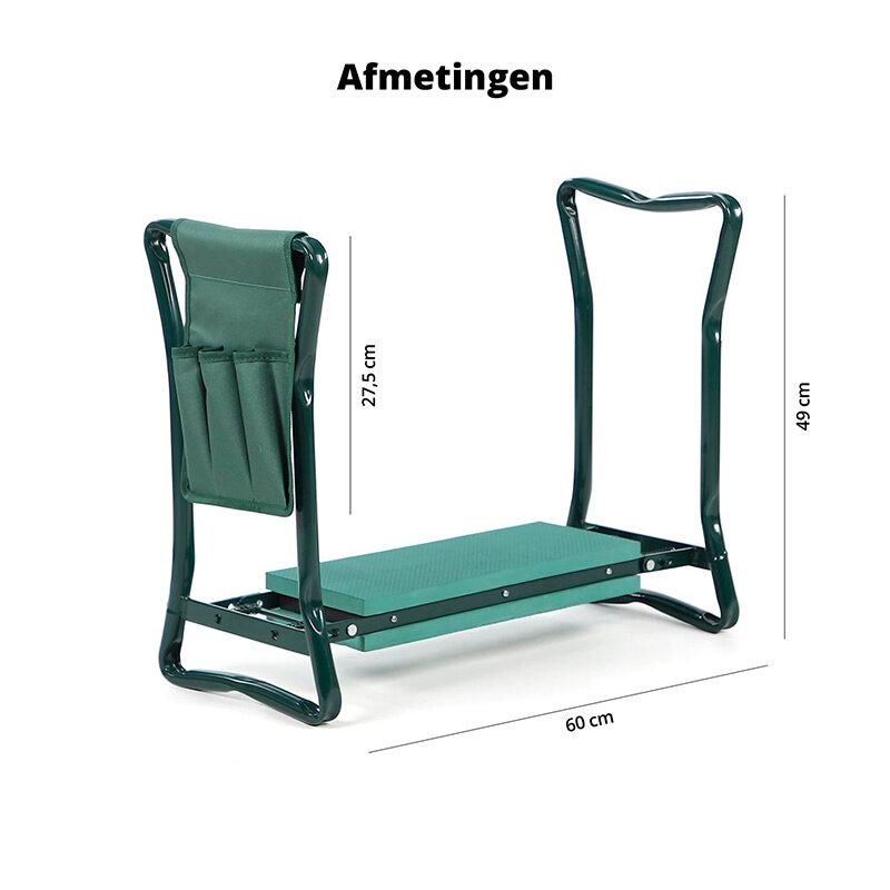 Met afmetingen van 60 x 27 x 49 cm is dit knielbankje compact en makkelijk op te bergen. Het robuuste en weerbestendige stalen frame van dit opvouwbare tuinkrukje kan maar liefst 150 kg dragen. Het opvouwbare design maakt het eenvoudig mee te nemen of op te bergen wanneer je het niet gebruikt. Perfect voor elke tuinliefhebber.