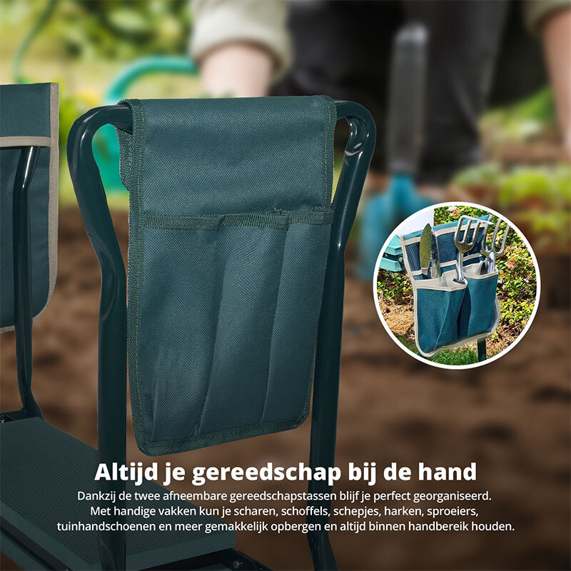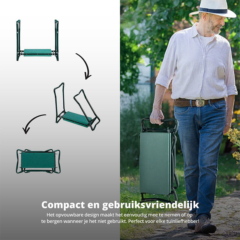 Dit 2-in-1 tuinbankje is niet alleen ideaal voor tuinieren, maar ook voor reparaties, kamperen, vissen en doe-het-zelfprojecten. Of je nu in de tuin werkt of bezig bent in huis, het krukje biedt je overal de steun en het comfort die je nodig hebt.