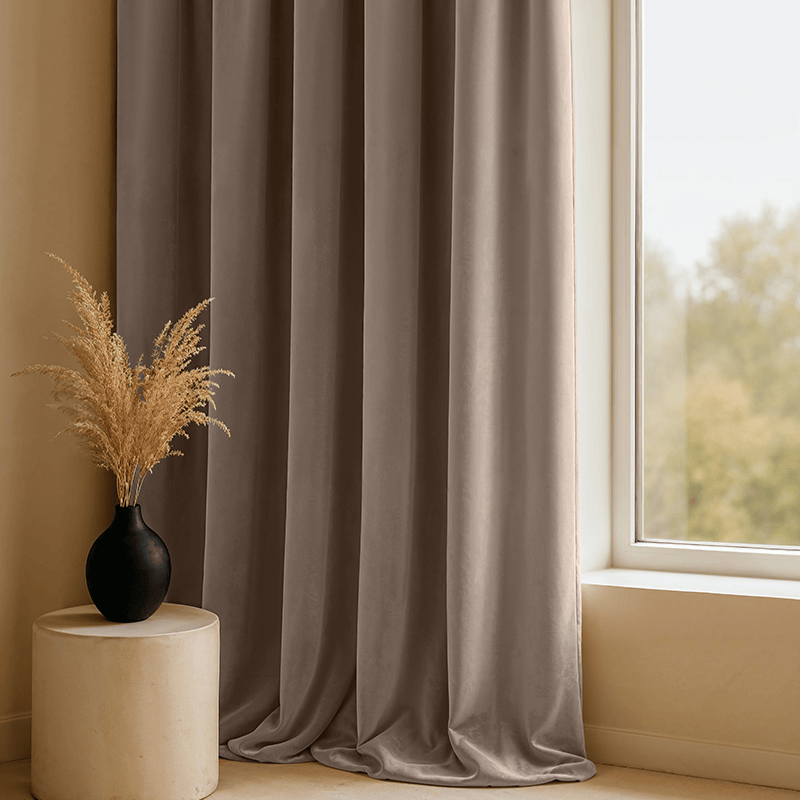 Verduisterende & Isolerende Velvet Gordijnen - 150 of 300 cm - Haken - Licht Taupe