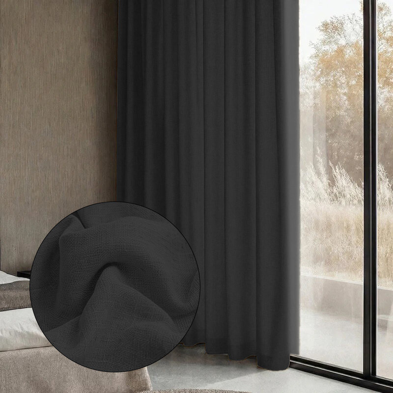 Gordijnen Met Linnen Look 150 Of 300 cm - Haken - Zwart