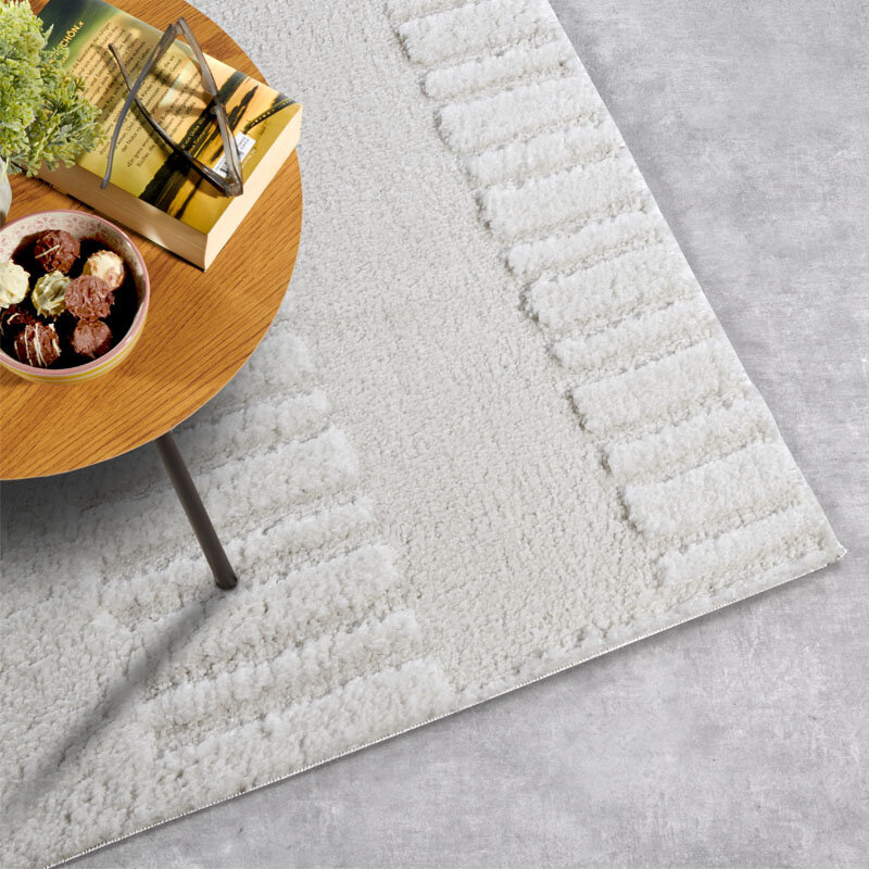 Vloerkleed Japandi is vervaardigd uit 100% polyester. De hoge pool zorgt voor een luxueus gevoel onder de voeten en biedt extra comfort in je woonkamer, slaapkamer of zelfs in de hal. Het vloerkleed voelt heerlijk zacht aan en creëert een warme sfeer in huis.