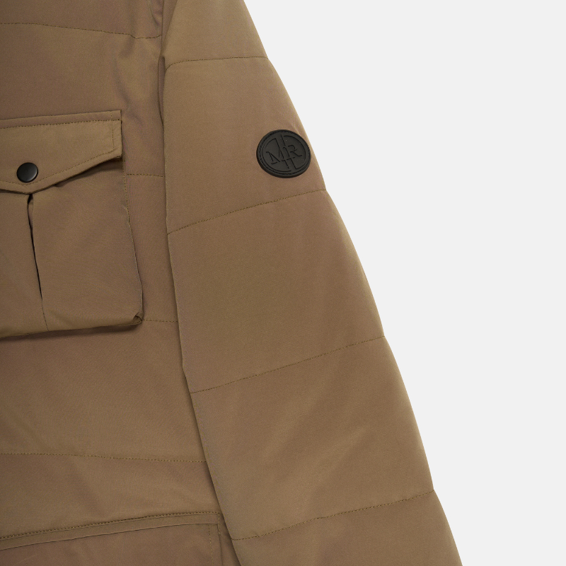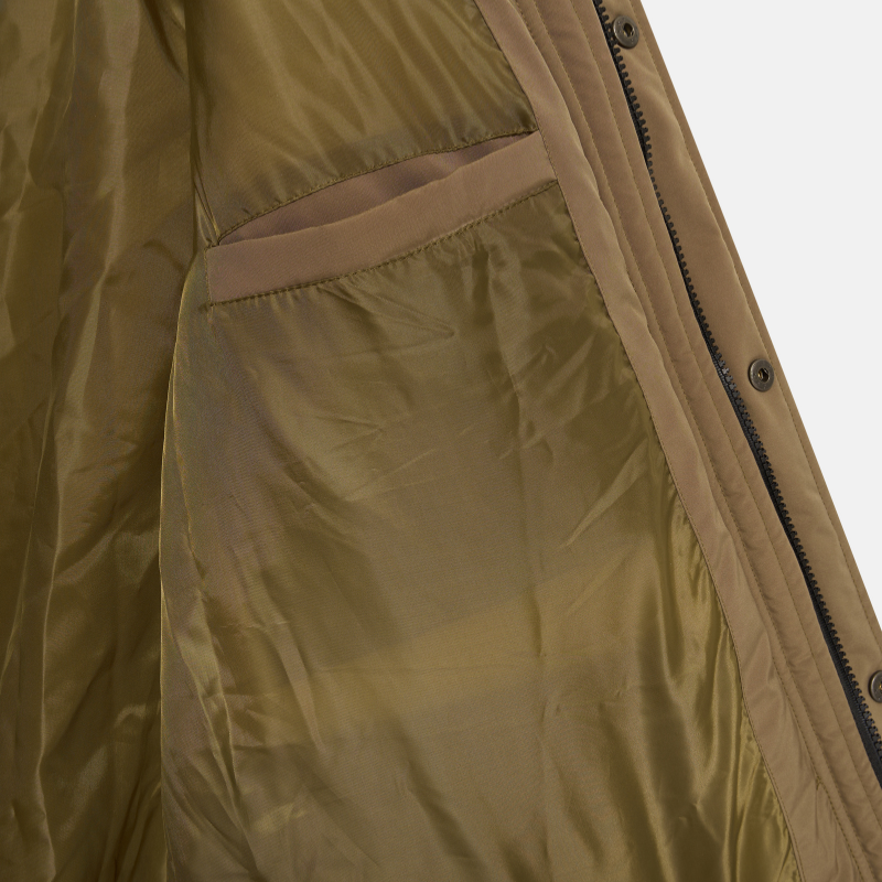 De jas is gemaakt van 100% polyester, wat zorgt voor warmte, duurzaamheid en behoud van vorm. Het materiaal is waterafstotend en ademend, waardoor je droog en comfortabel blijft. De jas kan op 30 graden worden gewassen en behoudt zijn kwaliteit bij normaal onderhoud.