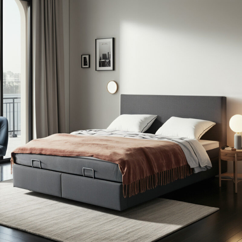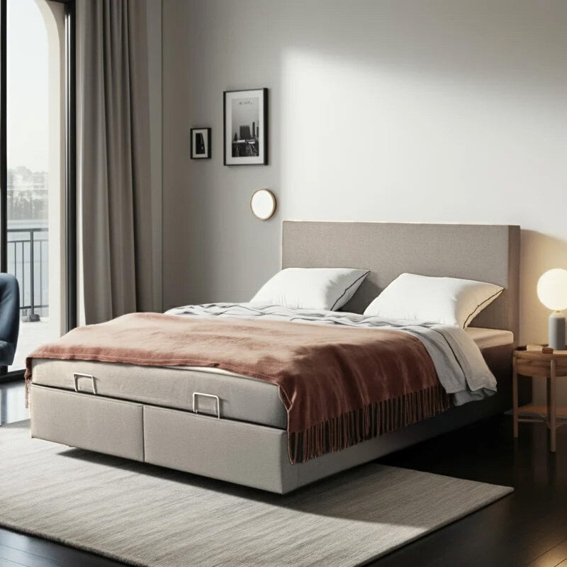 Op zoek naar een nieuwe boxspring? Dan wil je zeker zijn van kwaliteit, duurzaamheid én gemak. De Boxspring met opbergruimte Basic, volledig geproduceerd in Nederland, biedt al deze voordelen, nu met een geïntegreerde topper en geheel matras voor optimaal comfort.